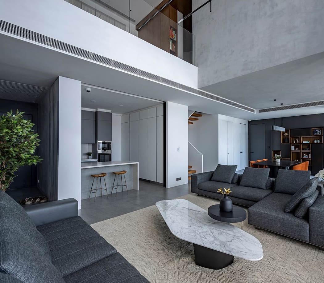 The minimalist style that characterises the interior design, in line with the contemporary character of the building, is enriched by refined details and colour choices in the calm, elegant shades of grey.